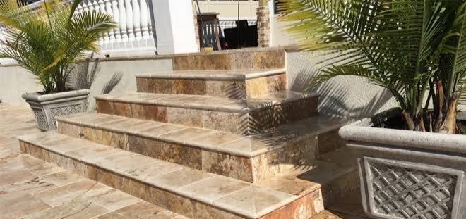 Natursteinstufen werden maßgenau den bestehenden Gegebenheiten